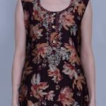 Color: Maroon with multicolor floral print
